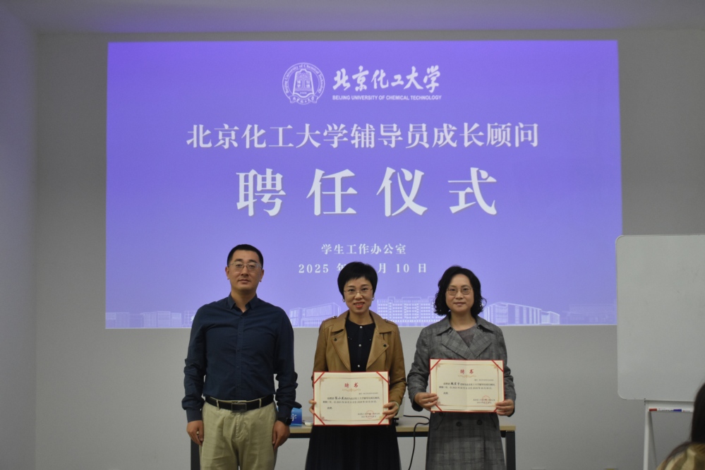 学生工作办公室聘任教育部高校教师精准就业指导能力提升特训师资班讲师魏宏宇老师和全国最美高校辅导员陈小花教授为“辅导员成长顾问”,并为两位老师颁发聘书。
